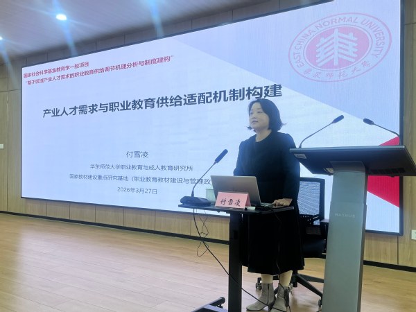 华东师范大学职业教育与成人教育研究所所长助理付雪凌副教授以《区域产业人才需求与职业教育供给适配机制构建》为题,剖析了当前职业教育供需适配面临的“决策急迫”“实践困惑”“理论缺失”三重困境。她提出,需求分析必须兼具科学性与系统性,应采用“内容—时间”双维度分析框架,既关注岗位与技能,又区分当下需求与未来3-5年的趋势变化。而供给端的适配核心,在于打破信息壁垒,推动专业、课程、教材、教师、基地五个关键要素与产业需求的精准对接。